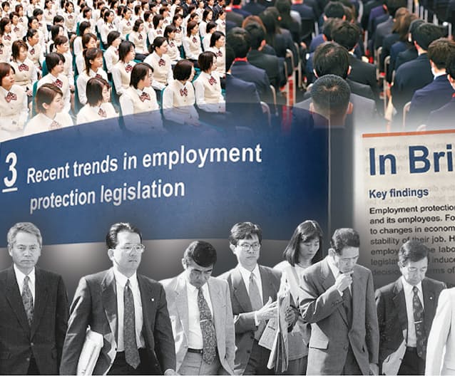 大企業と米国の影響が大きかった通説に一石を投じたのがOECDの「雇用保護指標(EPL)」だ。正社員の個別解雇で日本は規制の緩いほうから12番目、集団解雇は7~8番目。独仏やスウェーデンより解雇はしやすい。